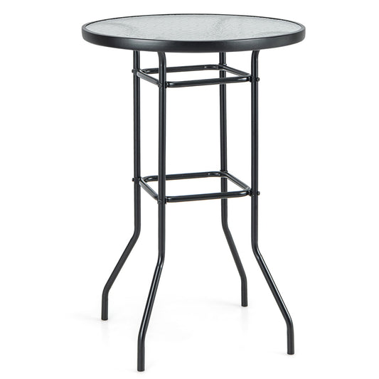 Patio Bar Table with Tempered Glass Tabletop and Heavy-duty Metal Frame