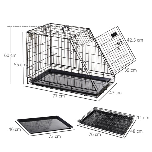 PawHut Metal Collapsible Car Dog Cage Crate Transport Folding Box Carrier Handle Removable Tray 77 x 47 x 55cm