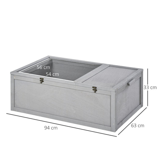 PawHut Tortoise House with Mesh Roof, Small Pet Reptile Wooden House, Tortoise Enclosure with Pulled-out Side Panel for Indoor, Outdoor, Grey