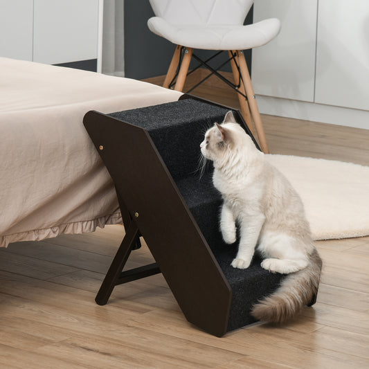 PawHut Foldable Pet Stairs Portable Dog Steps 3-Step Design with Non-slip Mats for High Beds, Sofas, 49 x 38 x 38 cm, Brown