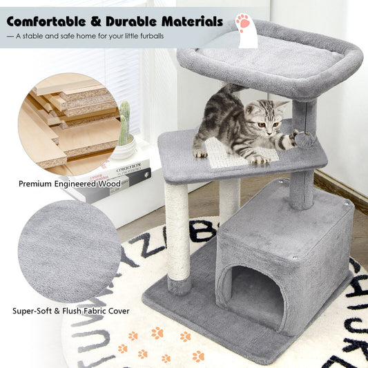 2-Tier Cat Tree with Sleeping Perch Sisal Scratching Plate and Ball-Grey