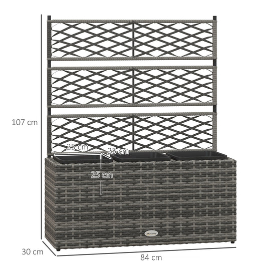 Outsunny 22L Garden PE Rattan Planter with Trellis, Free Standing Flower Raised Bed with Two Plant Boxes for Garden, Garden Planter for Climbing Plants, 57cm x 30cm x 107cm, Mixed Grey