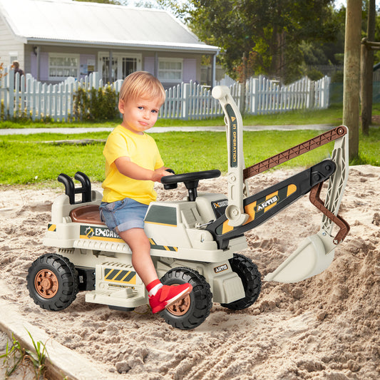 6V Electric Kids Ride On Excavator Toy with Storage and Sound Effects