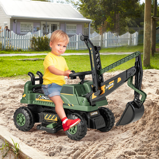 Kids Ride On Excavator with Rotating Seat and Underneath Storage-Green
