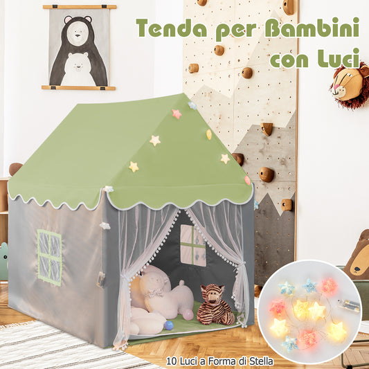 Large Kids Play House with Washable Mat and Star Lights-Green