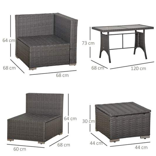 Outsunny 4-Seater Rattan Garden Furniture Patio Sofa Storage & Table Set with Coffee Table & Corner Sofa - Black