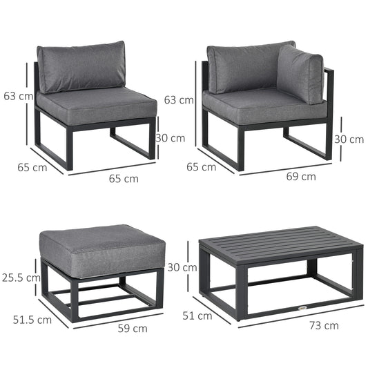 Outsunny 4 Pcs Aluminium Frame Garden Dining Set with 2 Chairs Sofa Glass Top Table Foam Cushions Sleek Contemporary Tough Durable Grey Black