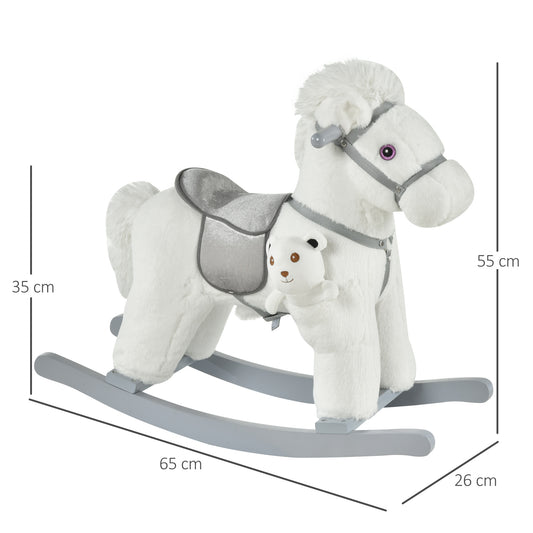 HOMCOM Kids Plush Ride-On Rocking Horse Toy Rocker with Plush Toy Realistic Sounds for Child 18-36 Months White