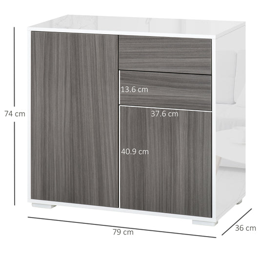 HOMCOM High Gloss Sideboard, Side Cabinet, Push-Open Design with 2 Drawer for Living Room, Bedroom, Light Grey and Black