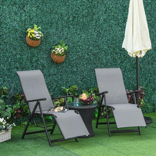 Outsunny Set of Two Adjustable Back Sun Loungers - Grey