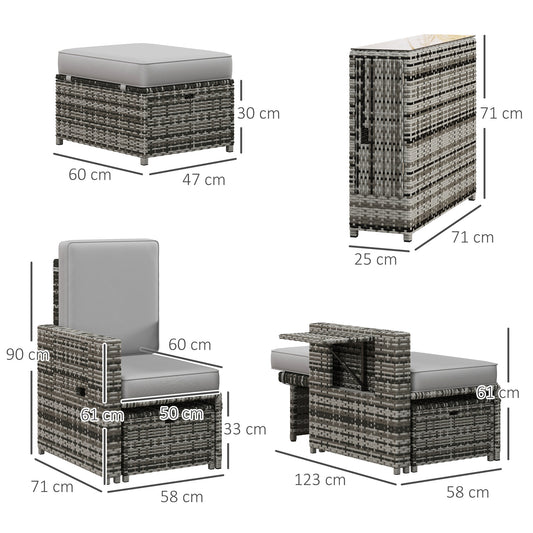 Outsunny Rattan Sun Lounger with Storage Tea Table & Footstools, Grey