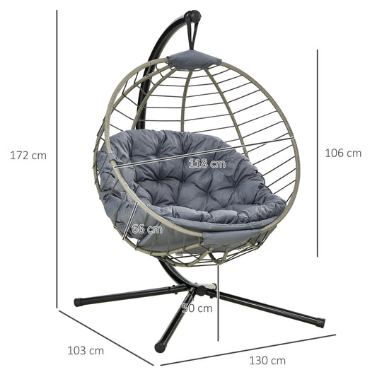 Outsunny Hanging Egg Chair, Folding Swing Hammock with Cushion and Stand for Indoor Outdoor, Patio Garden Furniture, Grey