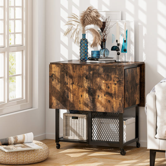 3-Piece Foldable Dining Table Set with Lockable Wheels for Small Place-Brown