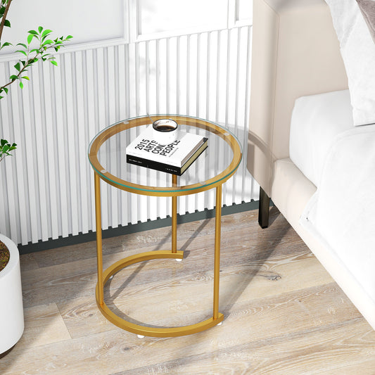 Nesting Coffee Table Set of 2 with Tempered Glass Tabletop-Golden