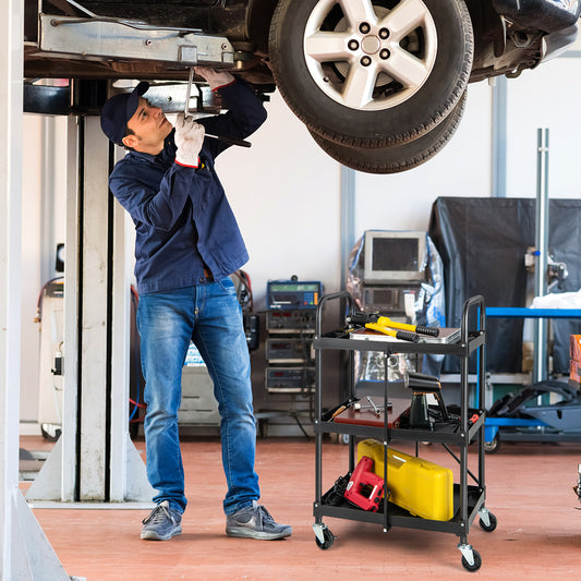 3 Tiers Folding Tool Trolley with Lockable Wheels and Tool Grooves