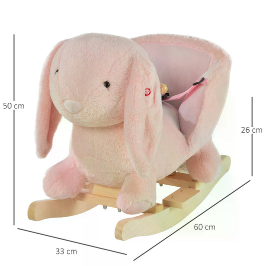 HOMCOM Toddlers Rabbit Plush Rocking Ride On with Sound Pink