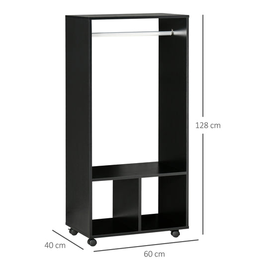 HOMCOM Open Wardrobe with Hanging Rail and Storage Shelves withWheels Bedroom- Black