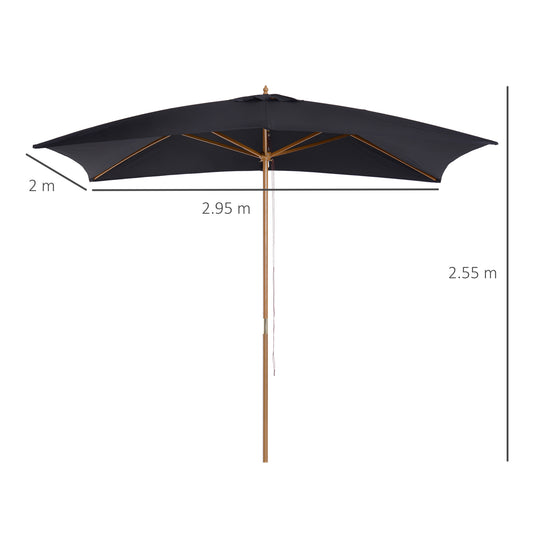 Outsunny Wooden Garden Parasol Umbrella Outdoor Sun Shade Canopy, Dark Grey 2 x 3m