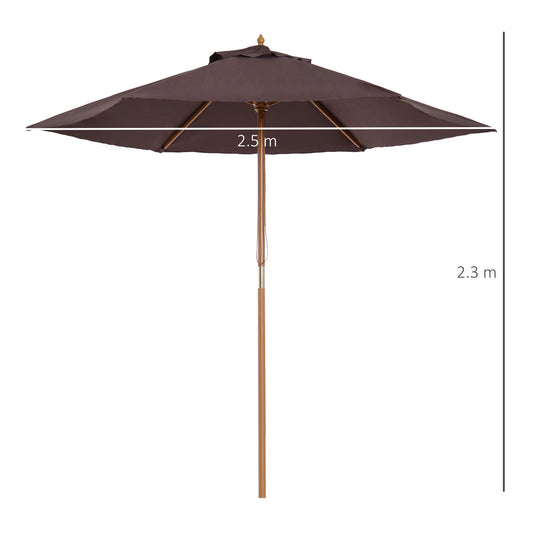 Outsunny 2.5m Wood Wooden Garden Parasol Sun Shade Patio Outdoor Umbrella Canopy New(Coffee)