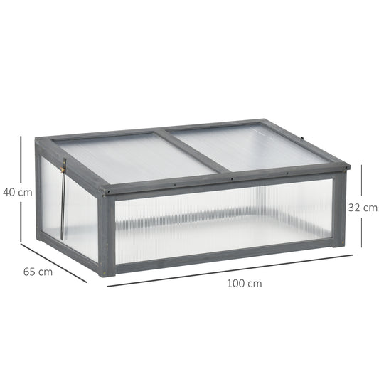 Outsunny Wooden Cold Frame, Small Polycarbonate Greenhouse for Plants with Openable & Tilted Top Cover, Grey, 100 x 65 x 40cm