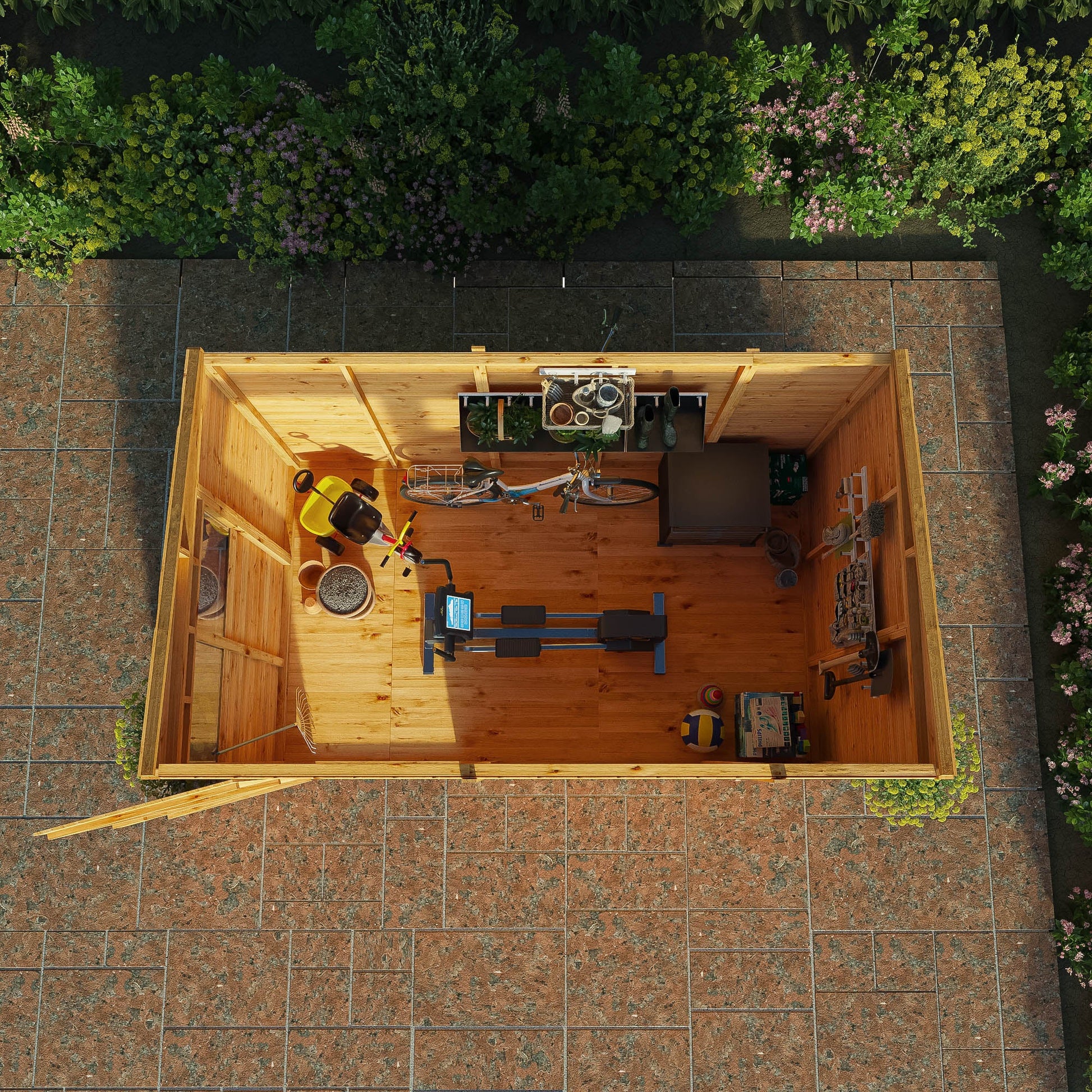 It features 12mm thick shiplap cladding with tongue and groove construction for durability.