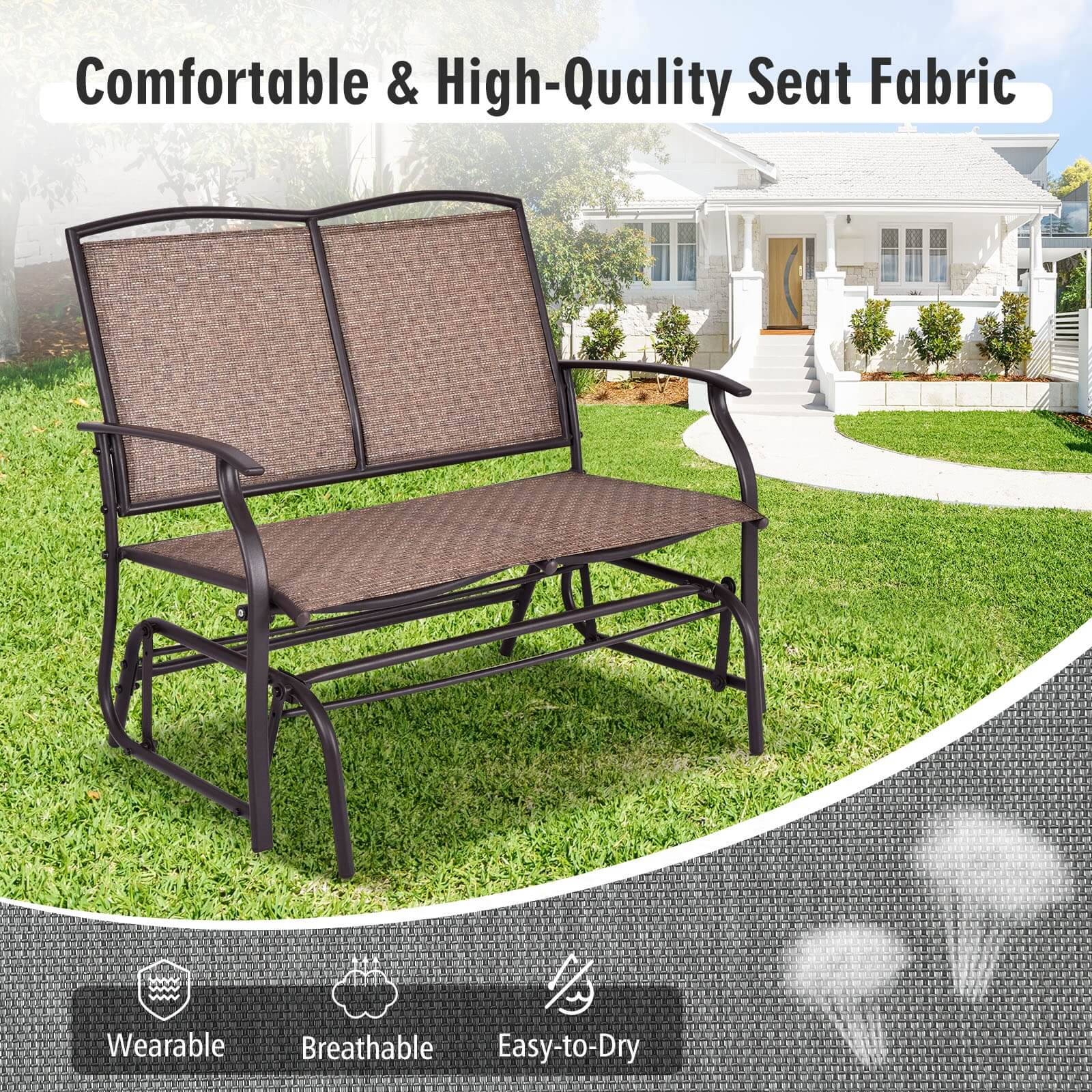 2-Person Patio Swing Glider Bench with Heavy-Duty Steel Frame-Coffee