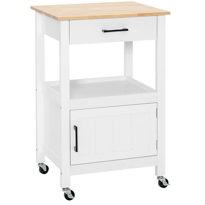 The small kitchen island cart makes your life much easier! This rolling serving car provides extra storage space for your kitchen, dining room, and living room. Many utensils, foods, odds, and ends can be well organized. With a wood countertop, you can better prepare your meals. With flexible universal casters, you can easily move or stop it! When you are preparing food on the countertop, give it a stable perch by locking the casters; when you want to offer some drinks for your guests, unlock the casters and roll it as you need.