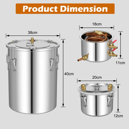 Professional Alcohol Still Kit: The package comes with a complete kit that has 3 thick stainless steel barrels, and all the necessary accessories. The copper tubes with excellent thermal conductivity can efficiently cool the distilled steam and make fine wine. With a 22/38 L large capacity, you can share with your friends and family.