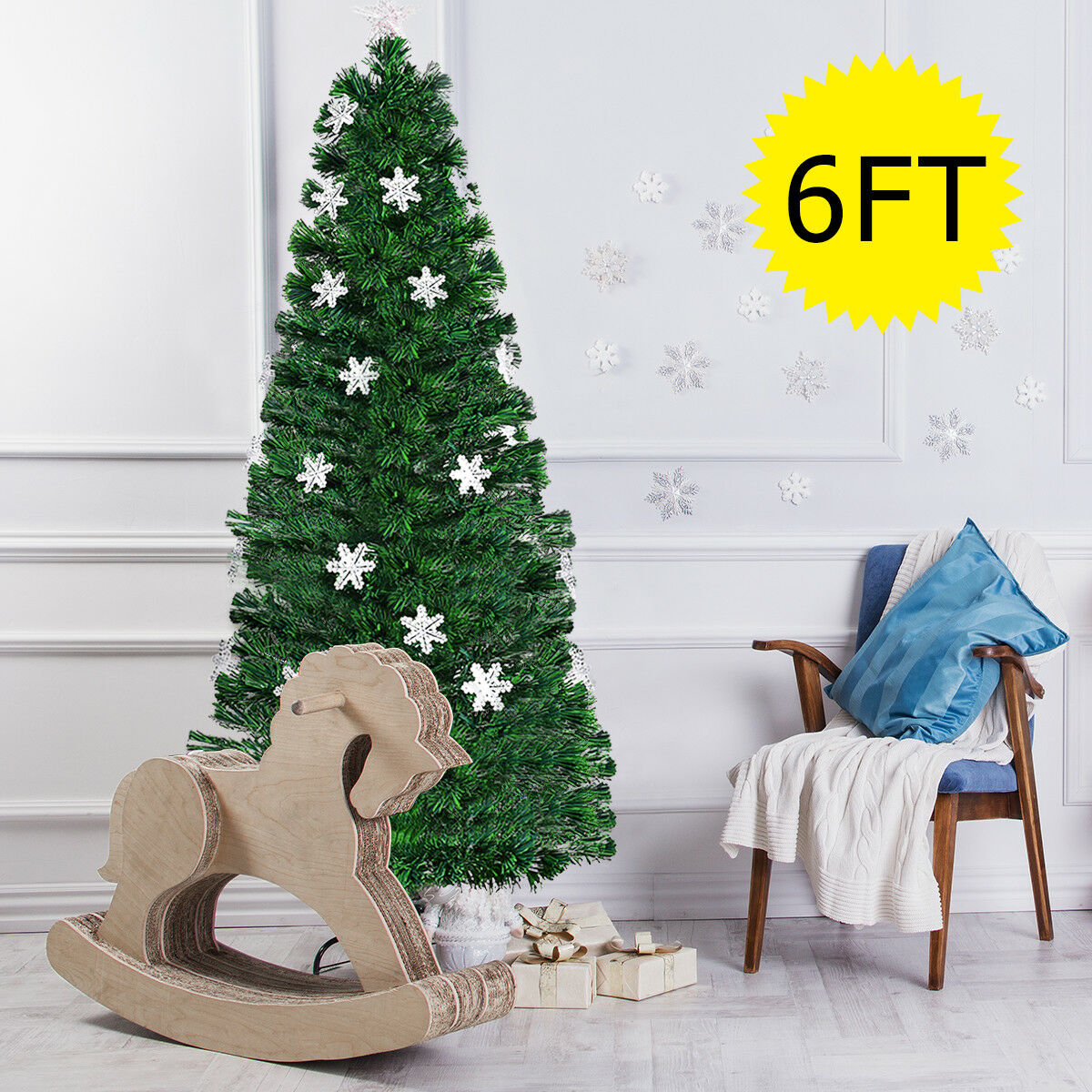 3/4/5/6 Feet Artificial Fibre Optic Christmas Tree with Snowflakes Top Star-6 ft
