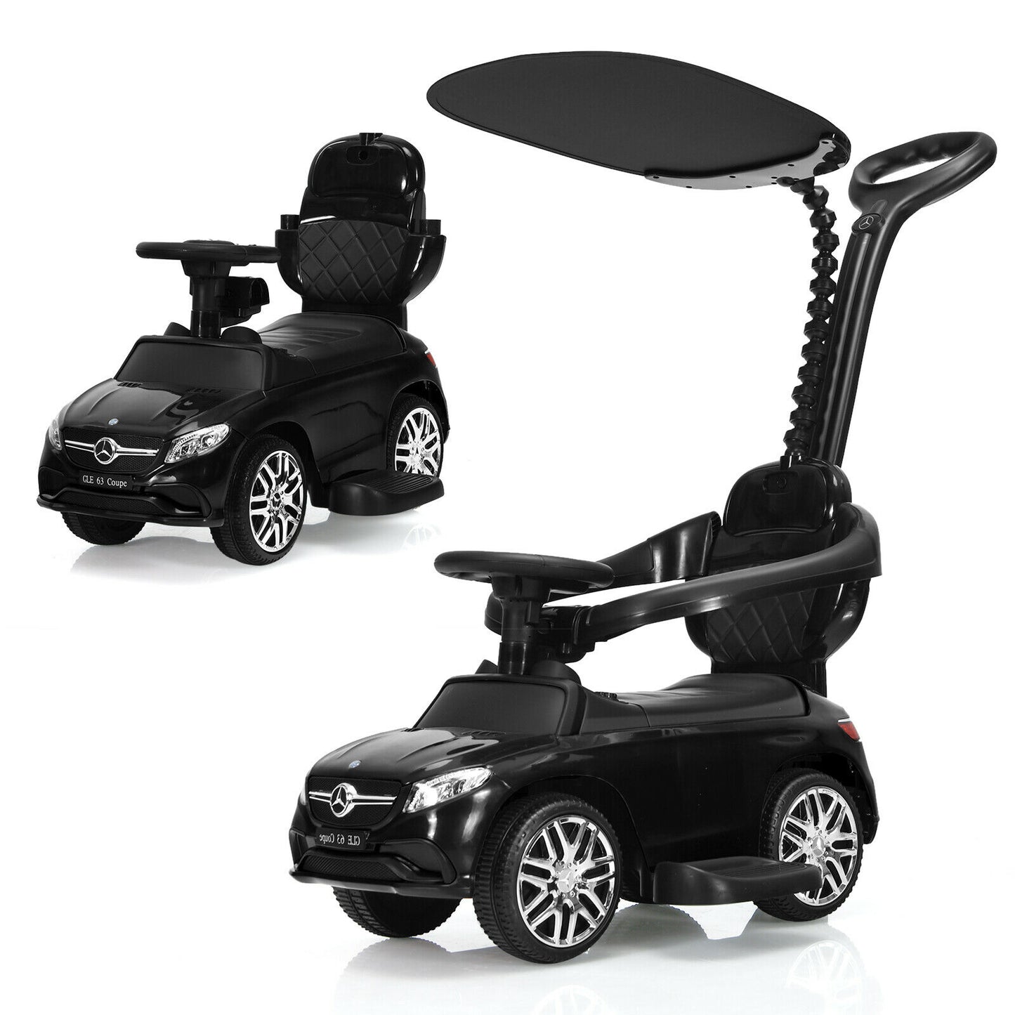 ? Adjustable Sun Canopy: Specially designed with a removable sun canopy, the push along car makes it a more comfortable environment for kids. On summer days, the canopy can reflect the sunlight while proving the shadow for more coolness. Besides, the adjustable structure enables you to 360° adjust the canopy.