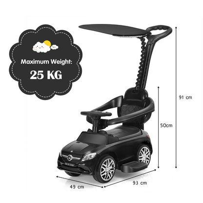 ? Child-friendly Design: Soft seat provides kids with utmost comfort. Equipped with a cup holder, which helps parents to conveniently place cups. Furthermore, with sleek and exciting appearance, the Mercedes Benz licensed ride on push car brings your child endless fun.