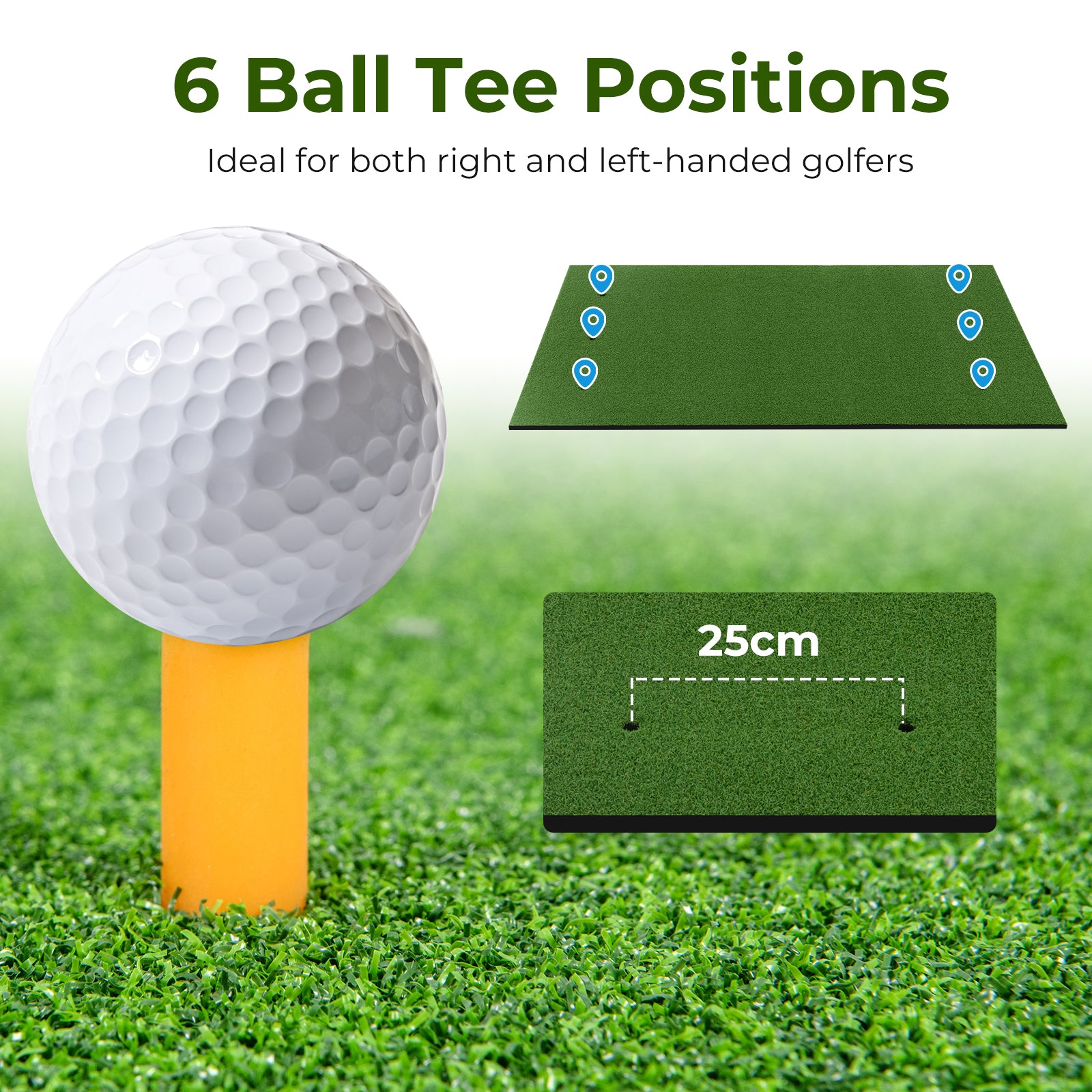 Convenient Tee Holes Design: Designed with 6 pre-drilled golf tee holes, and 2 golf tees the practice mat allows both left and right-handed golfers to practice their drives with ease. Whether you're a beginner or a pro, these tee holes ensure accurate and consistent shots every time.
