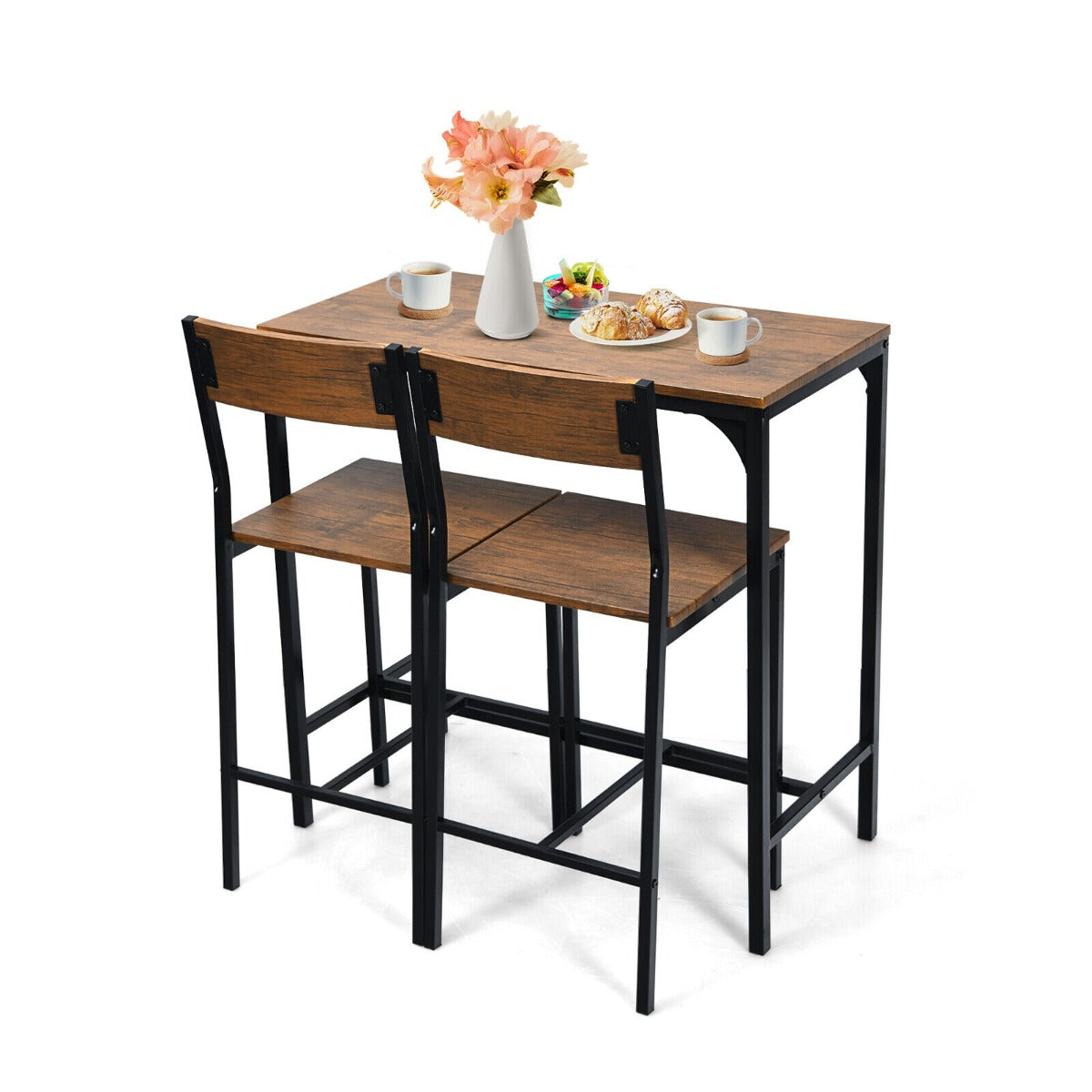 3 Pieces Dining Table Set for Home Kitchen Living room Restaurant-Brown