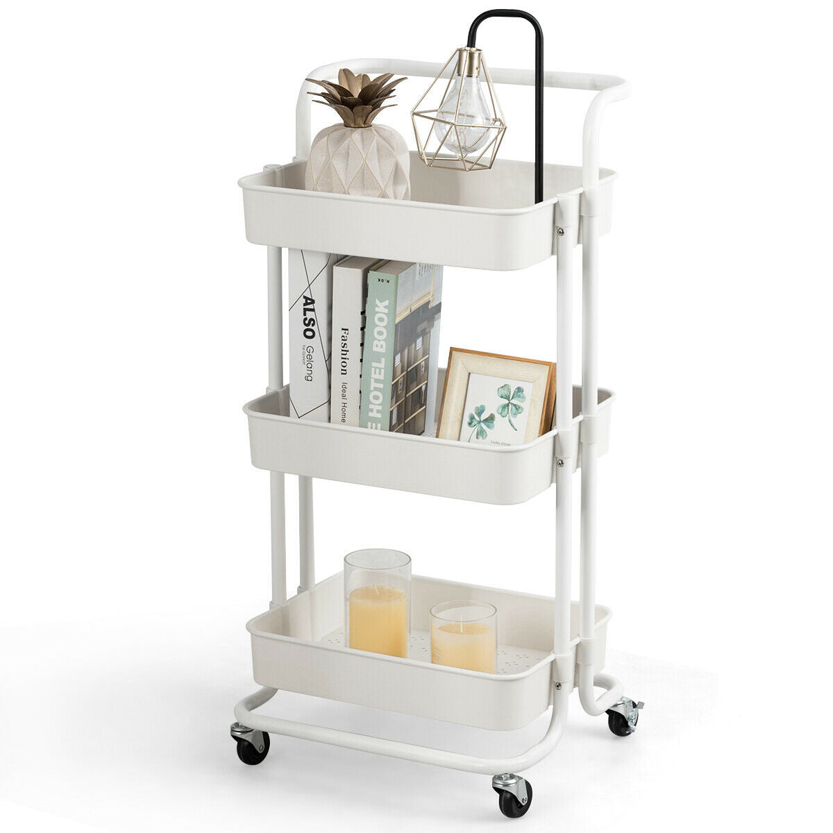 3 Tiers Roller Kitchen Bathroom Storage Rack-White
