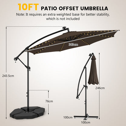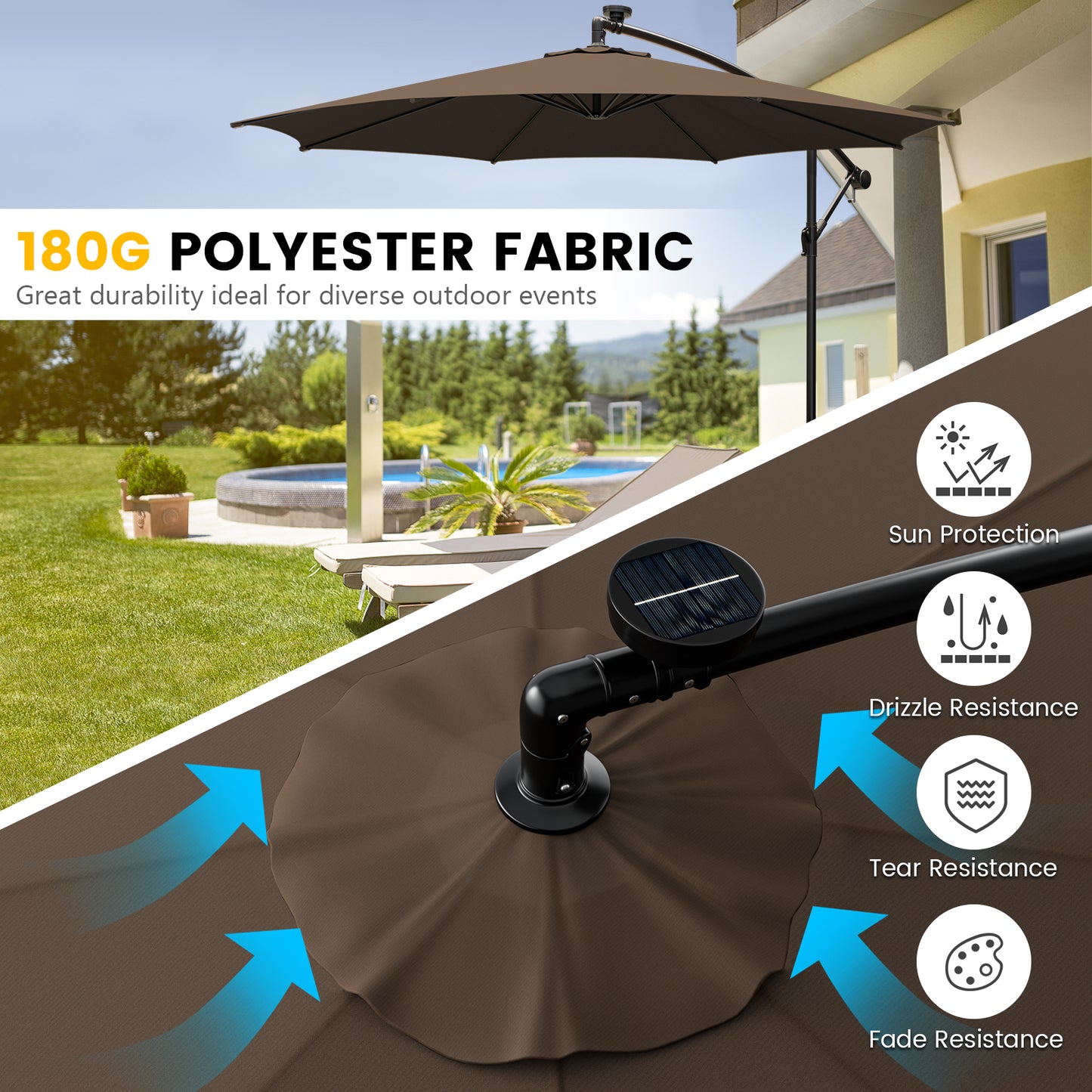 303 CM Solar-Powered Patio Offset Umbrella with 112 LED Lights-Brown