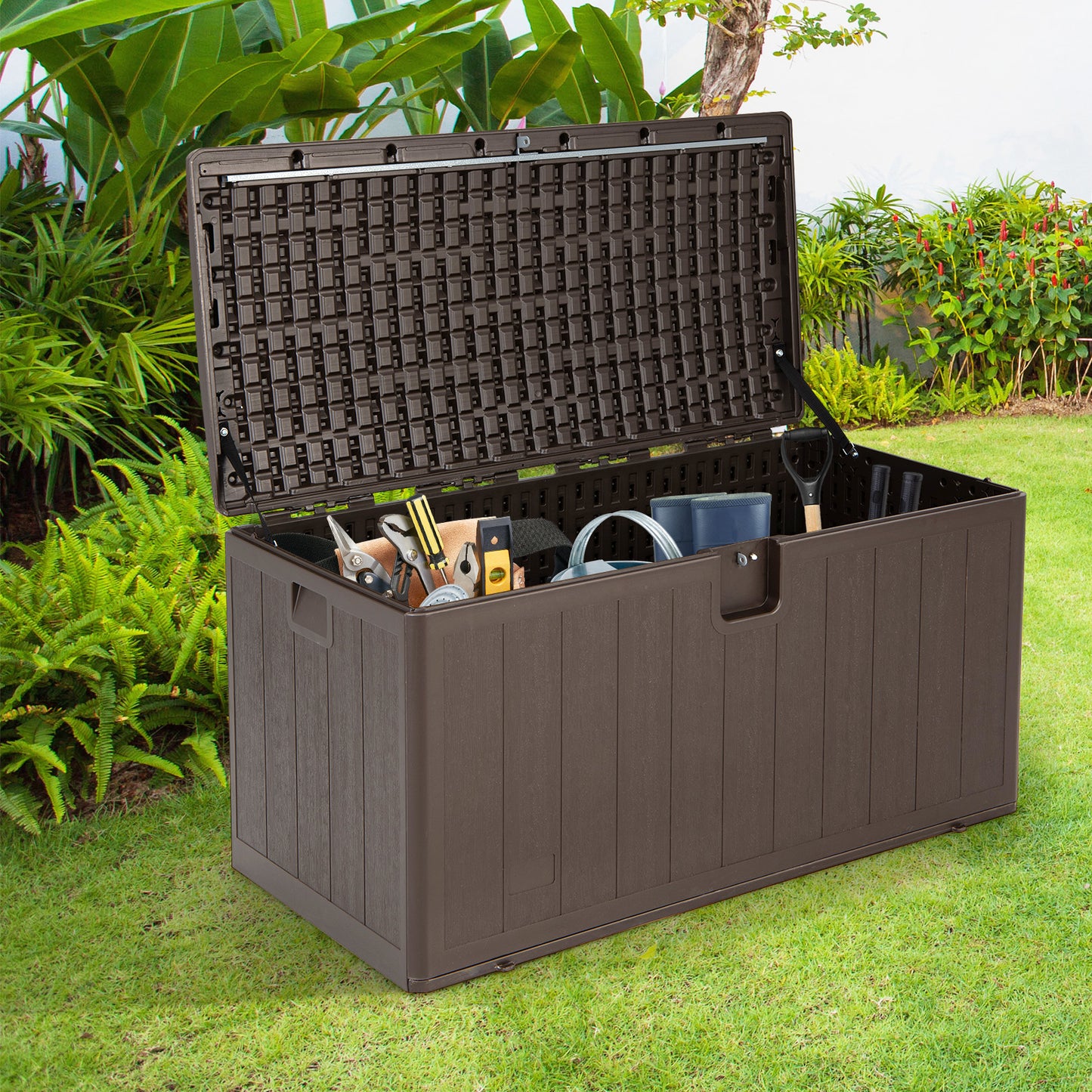 Well-designed Details for Convenience: The deck storage cabinet is equipped with built-in handles so as to allow it for easy transportation when you want to move it from indoor to outdoor place. Additionally, lockable design takes the security to a higher level(lock is not included) and you can lift the lid effortlessly via the pre-assembled straps.