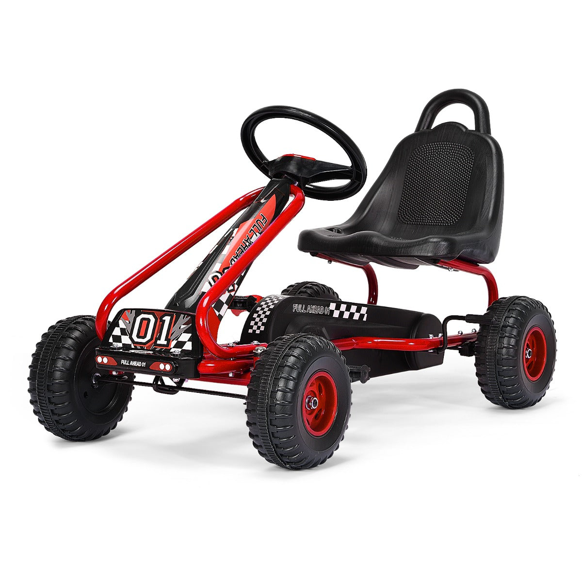 Adjustable Kids Pedal Go Cart Children Outdoor Ride On Racer with Plastic Wheels-Red