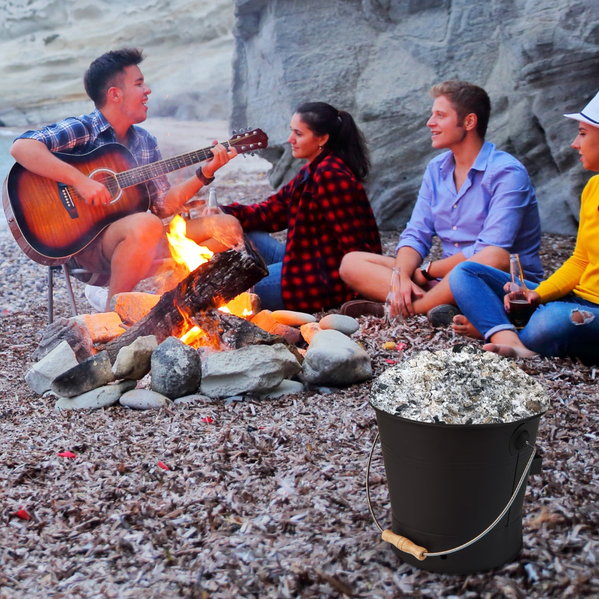 Premium Metal Bucket: This ash bucket features a sturdy and durable construction, and the high-quality metal is rust-proof and high temperature resistant. Plus, the wooden handle offers a comfortable grip, preventing any risk of hand injury or burns.