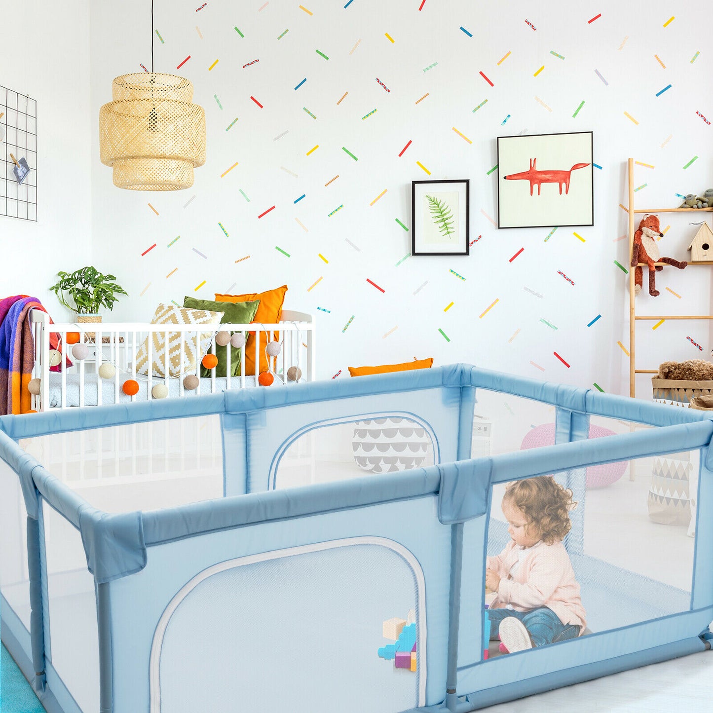 Baby Playpen Portable Activity Centre with Gate-Blue