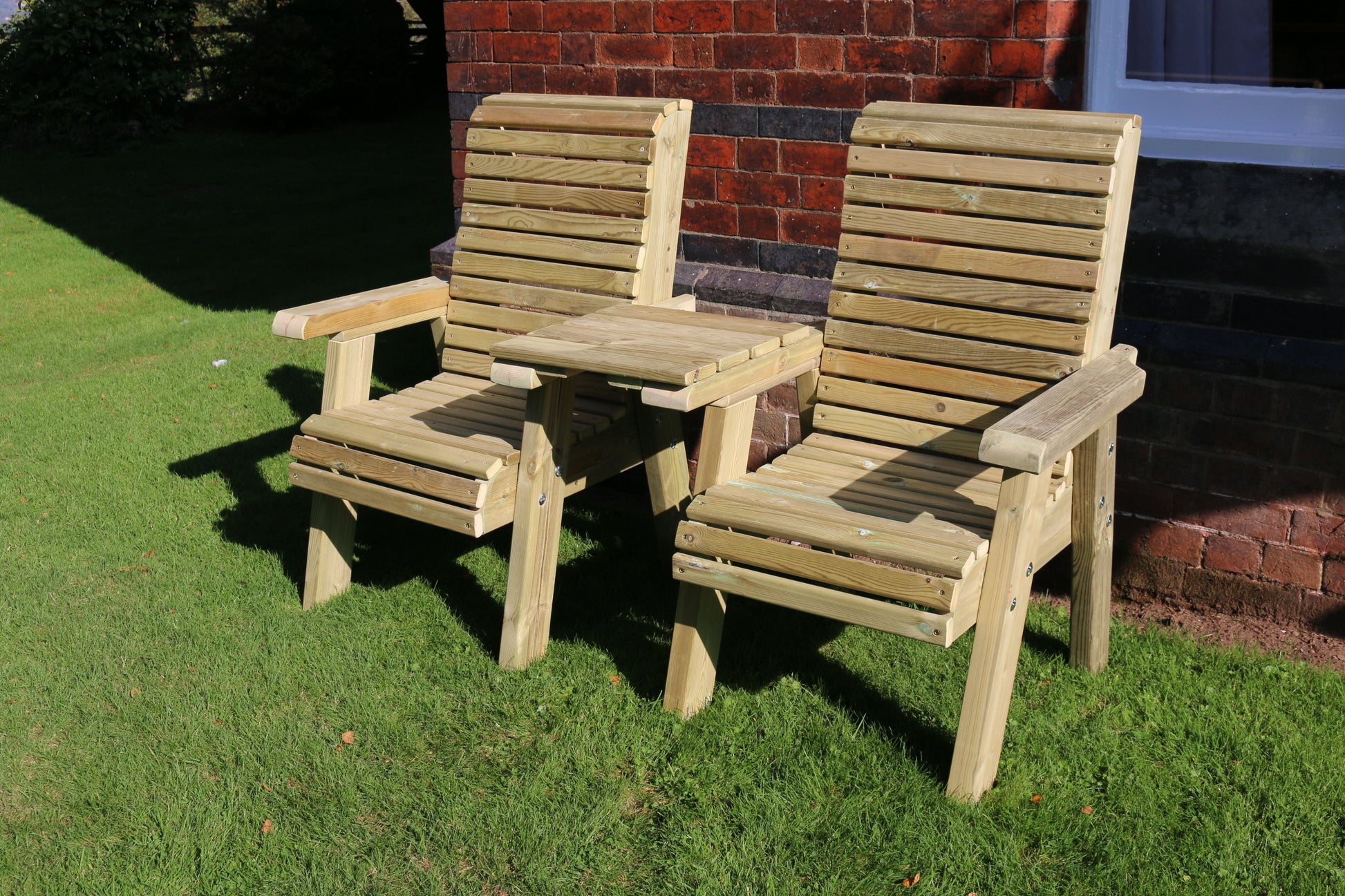 Share cozy moments on this premium timber love seat with lumbar support. If it's not love in 30 days, we'll handle the return for a full refund.