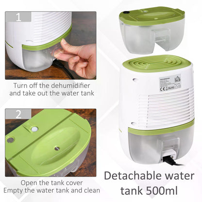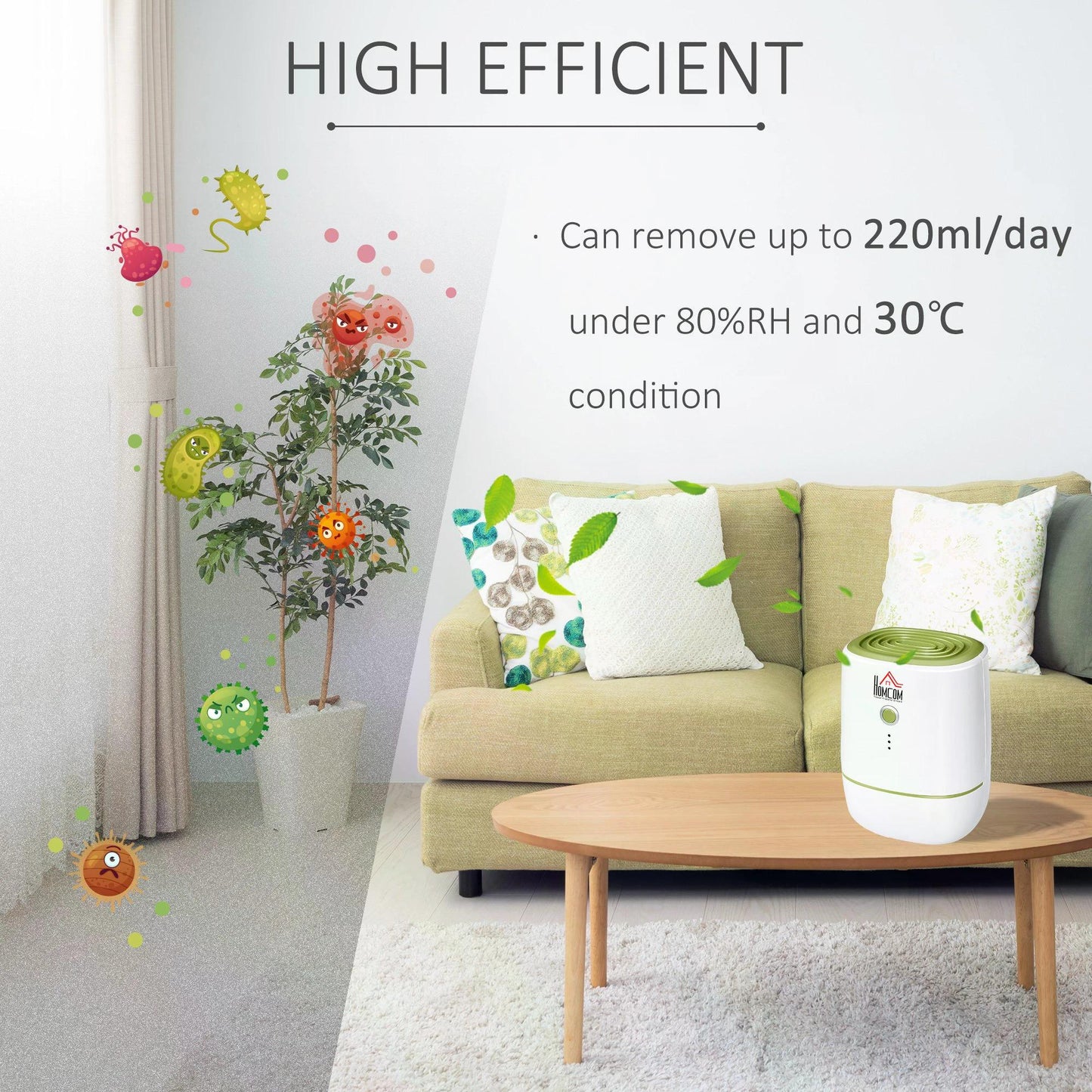 HOMCOM 500ML Portable Small Dehumidifier Auto Shut Off Silent Moisture Air Cleaner for Bedroom, Bathroom, Living Room, RV