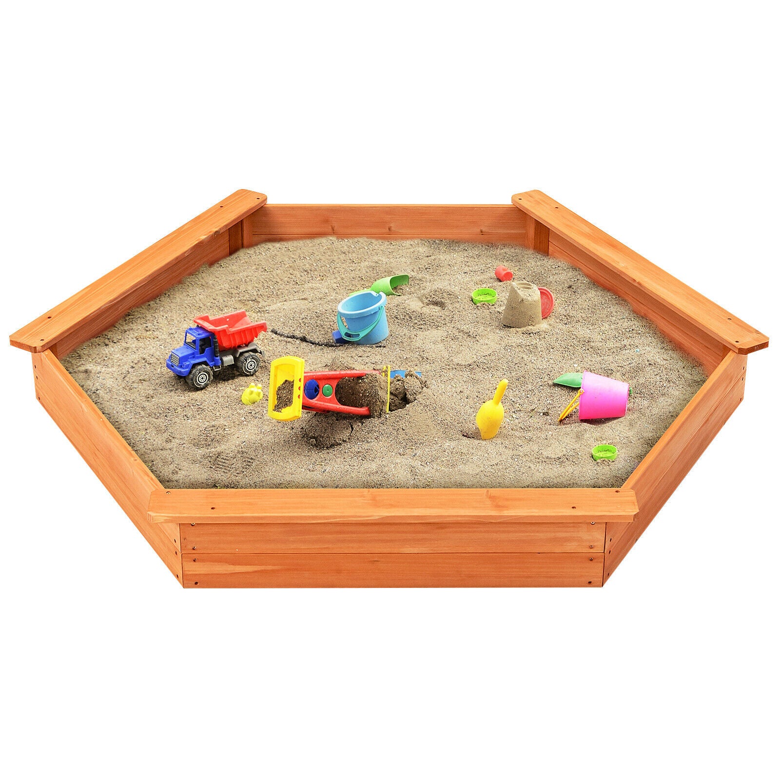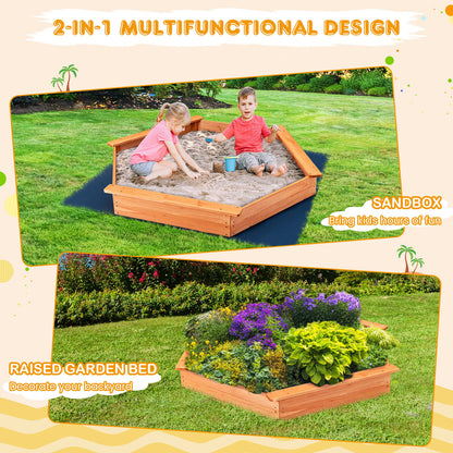 This product is ideal for you if you want a cedar sandbox that brings endless outdoor fun for 4-6 kids, with built-in benches for comfortable breaks. The sturdy hexagon sandbox cover keeps sand clean and secure, while the bottomless design ensures easy drainage. Transform it into a garden bed for added versatility, perfect for play and decor!
