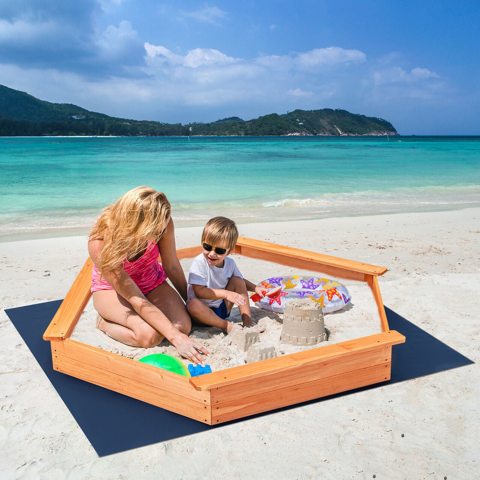 Kids Wooden Sandbox with Oxford Cover and Seat