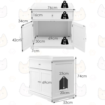 Large Wooden Cat Litter Box Hidden Washroom Toilet with Drawer-White