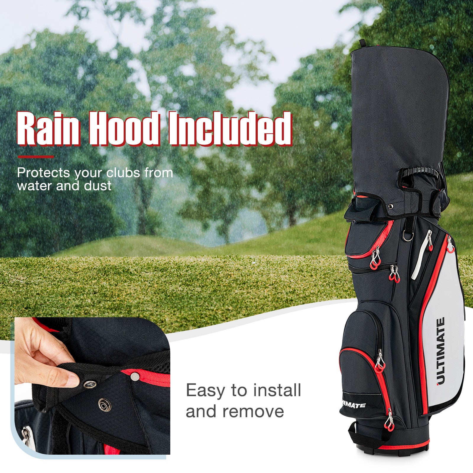 Rain Hood/Dust Cover Included: This golf stand bag comes with a detachable rain/dust cover, which can be attached to the bag to protect your golf clubs from any weather conditions as well as for tidy storage. It is placed in the side bag, please pay attention to check when you received the package.