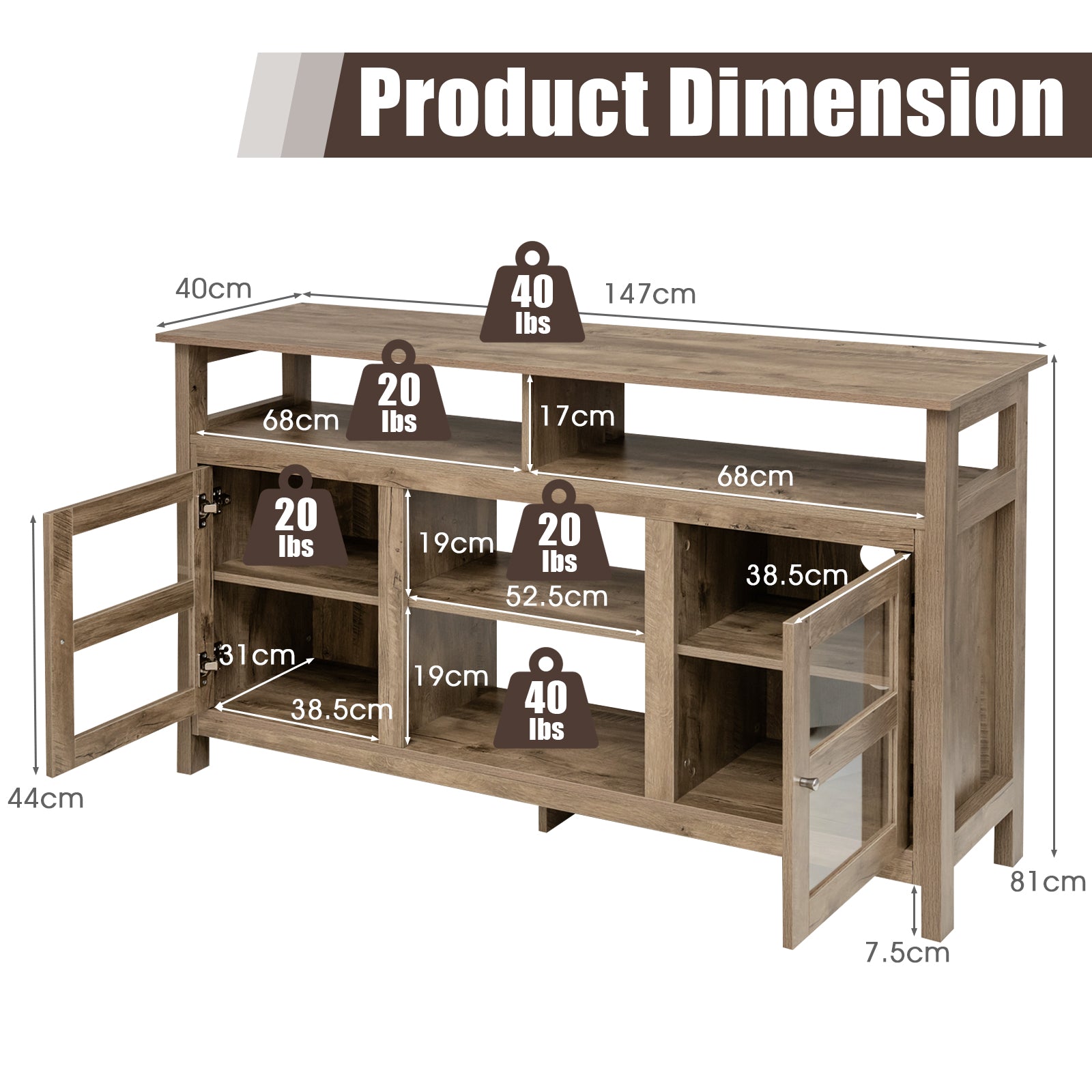 Large Storage Space and Spacious Top: The tabletop of this chic TV stand is large enough to accommodate a flat screen TV up to 165 cm. Moreover, featuring 2 cabinets and 4 open shelves, this console table offers ample space to organize all of your video and audio components along with your DVD and game collection.