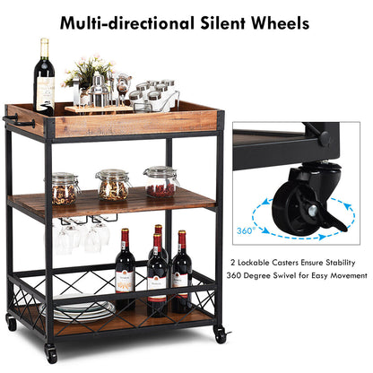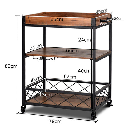 Mobile Kitchen Trolley Cart with Removable Tray and Glass Holder