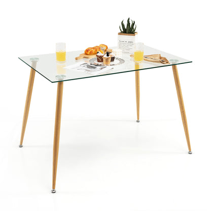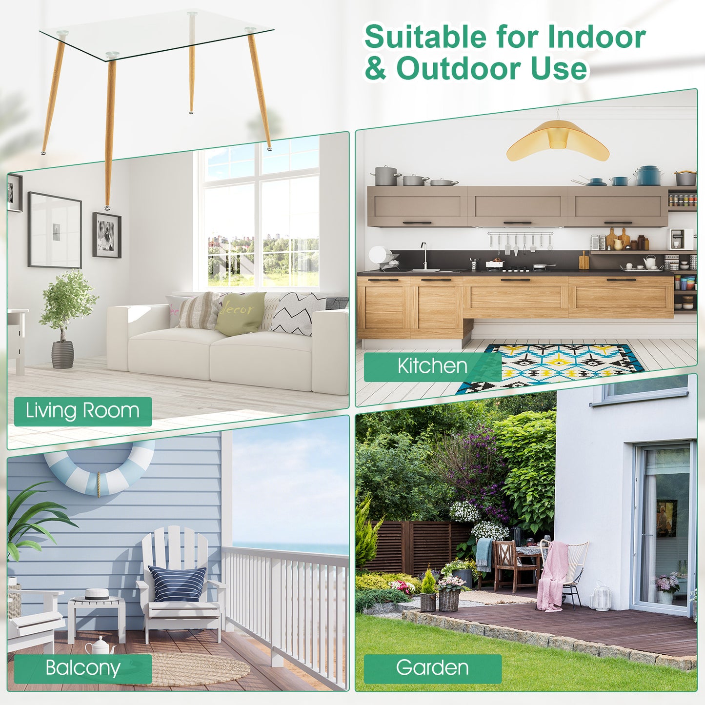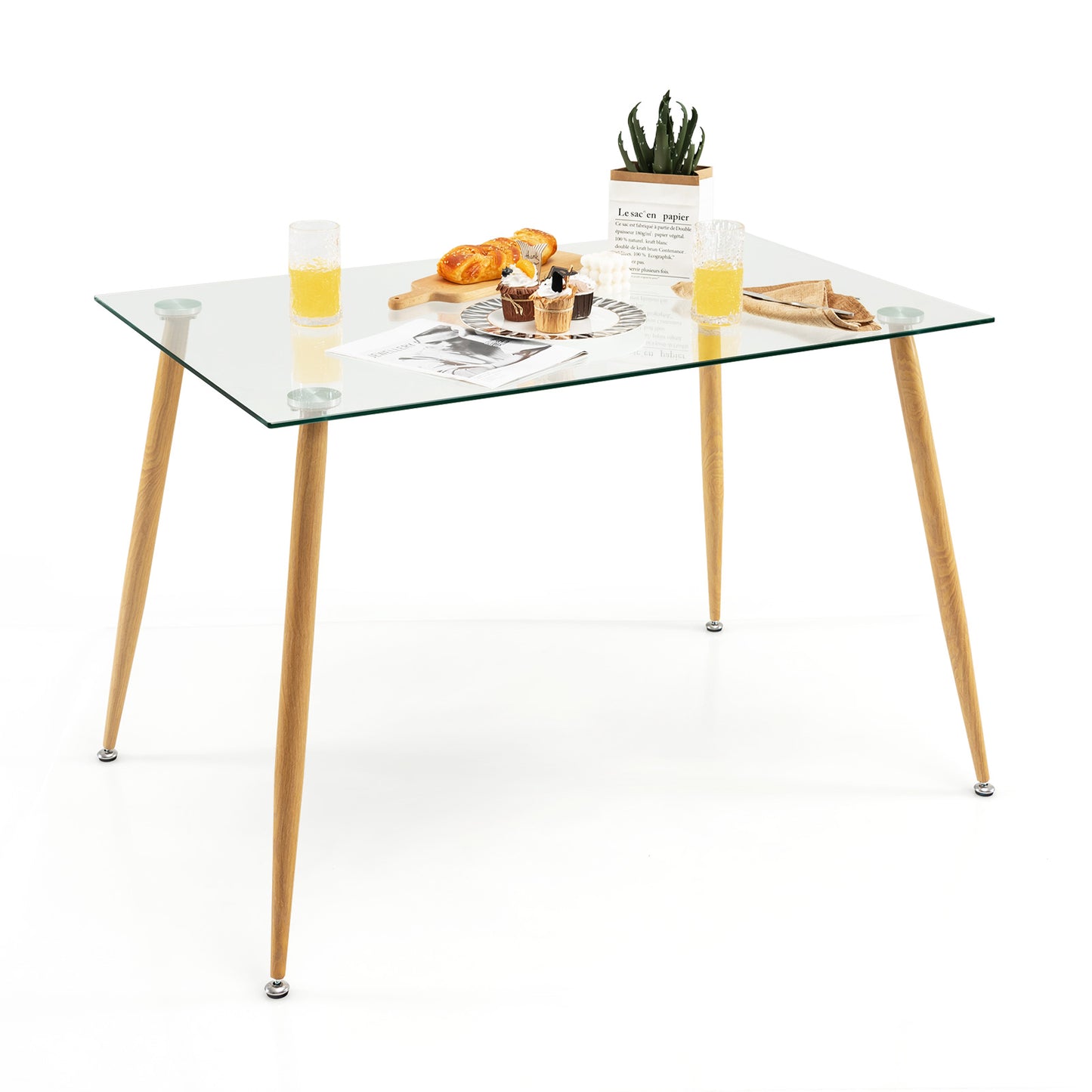Steel Legs with Wood Print: The glass dining table comes with 4 sturdy metal legs with a wood grain finish that ensures more reliable support while creating a natural appearance. What's more, the table legs are equipped with adjustable foot pads for higher stability on uneven floors.