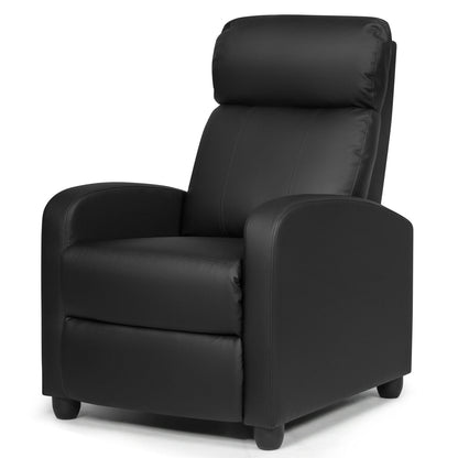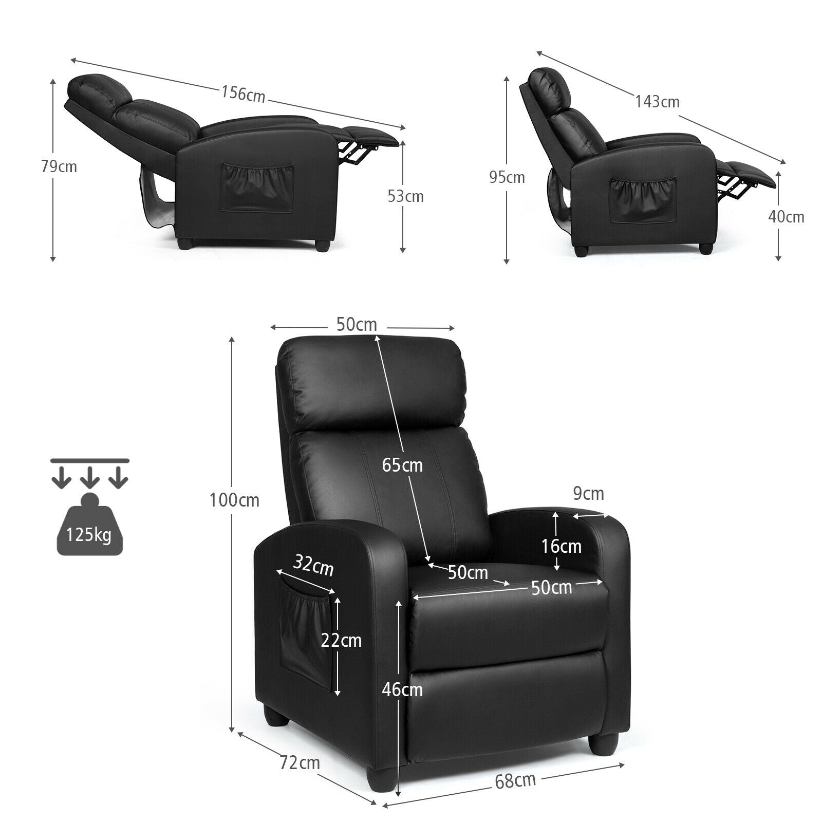 Maximum Comfort: This single reclining sofa is constructed of PU leather with high density sponge and soft cushion with elastic springs which provides maximum comfort. The cozy armrests, wide backrest and ergonomic footrest fit the body curve to give you full relaxation.