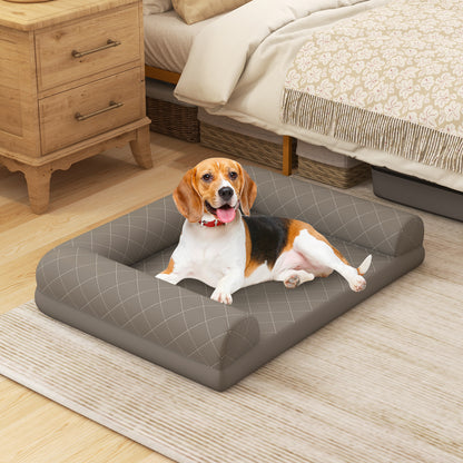 Orthopedic Dog Bed Egg-Foam Dog Crate Bed with 3-Side Bolster-Grey